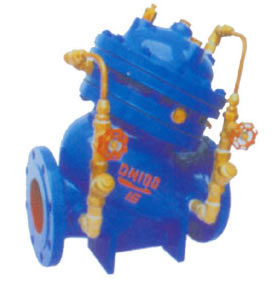 多功能水泵控制閥啟動(dòng)前,閥門(mén)出口端壓力作用在主閥板上,主閥板處于關(guān)閉位置,同時(shí)膜片控制器的上腔連通壓力水,下腔則與閥門(mén)進(jìn)口端的低壓相通。